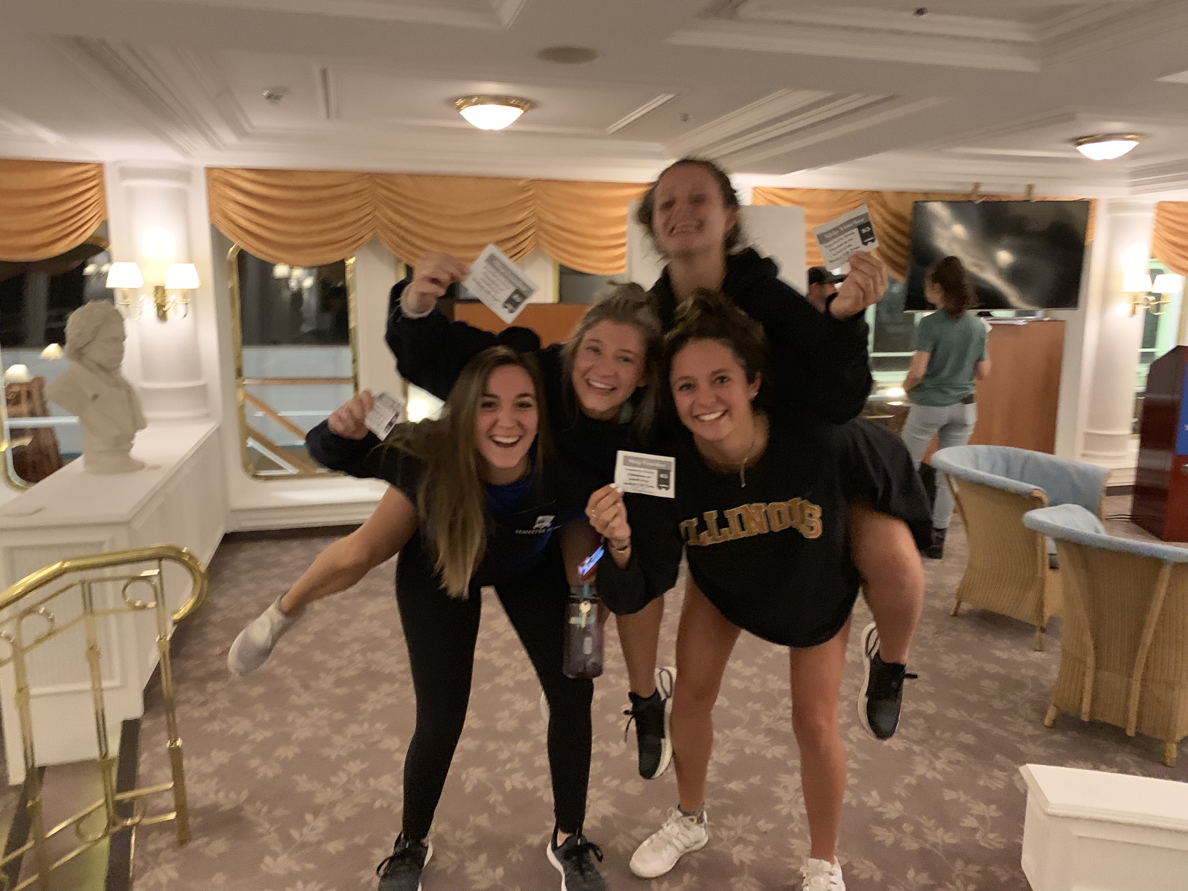 I skipped blogging yesterday because I had a fever and was told by the ship doctor to stay in bed. I am feeling much better today! Last night we had a movie playing in the student union called Crazy Rich Asians. It is one of my favorites. ❤ I had seen it a couple of times but my friend Delainey really wanted to go because she had not seen it. Within the first 15 min of the movie Delainey had fallen asleep… typical. The waves started to get really bad last night. We were told that we are suppose to reach up to 15 feet swells. Yikes! Last night we were only at around 5-10 ft and people were getting sick.